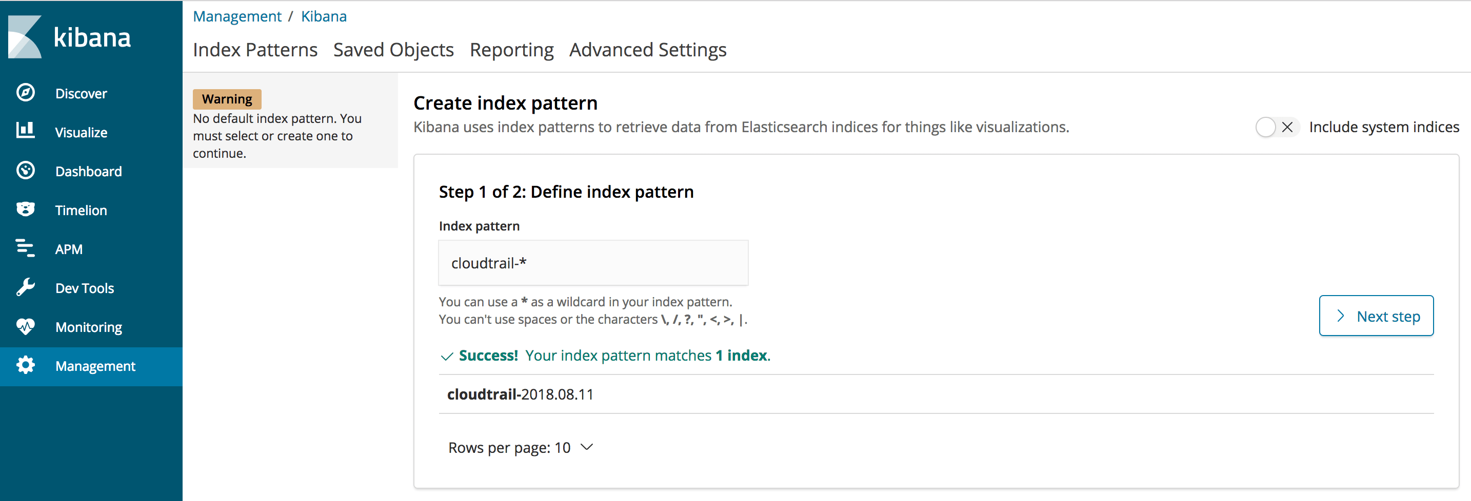 Next, configure Logstash to read CloudTrail logs on an interval basis. The geoip filter adds information about the geographical location of IP addresses, based on sourceIPAddress field. Then, it stores the logs to Elasticsearch automatically: